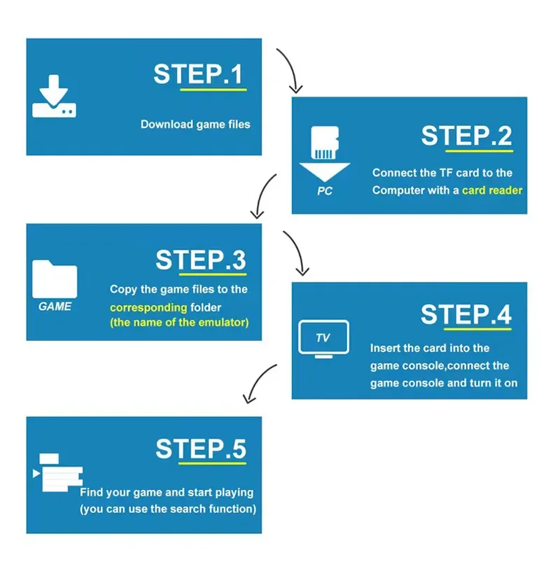 Product configuration mainframe one HDMI, one USB charging line, one wireless handle and two TF cards